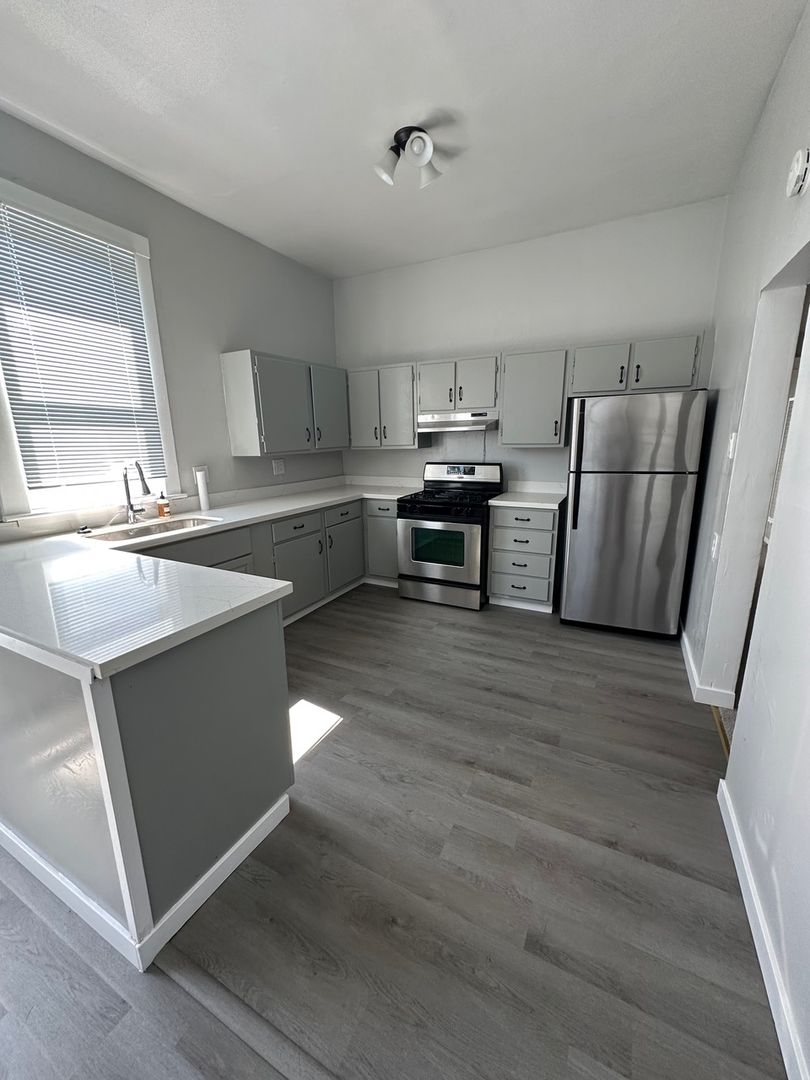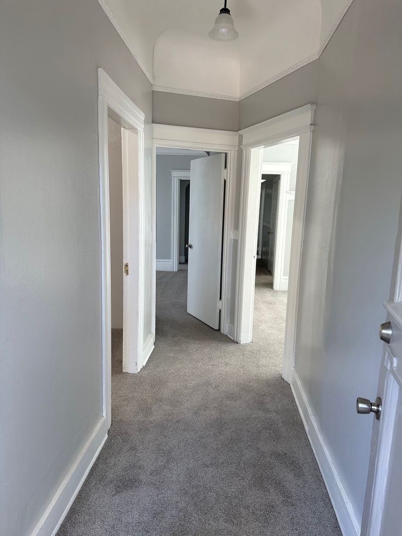 3 bedroom 2 bath upper flat unit located the San Francisco Bayview district. The house has a large kitchen that has been completely remodeled from top to bottom, including all new stainless steel appliances, cortez counters, and gleaming vinyl floors. The primary bedroom has an en suite bathroom that has been completely remodeled. All bedrooms and the living room have new carpet. Living room has fireplace (only for decoration not for use)